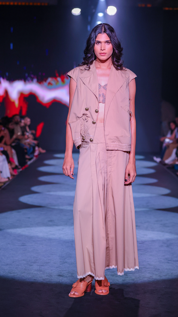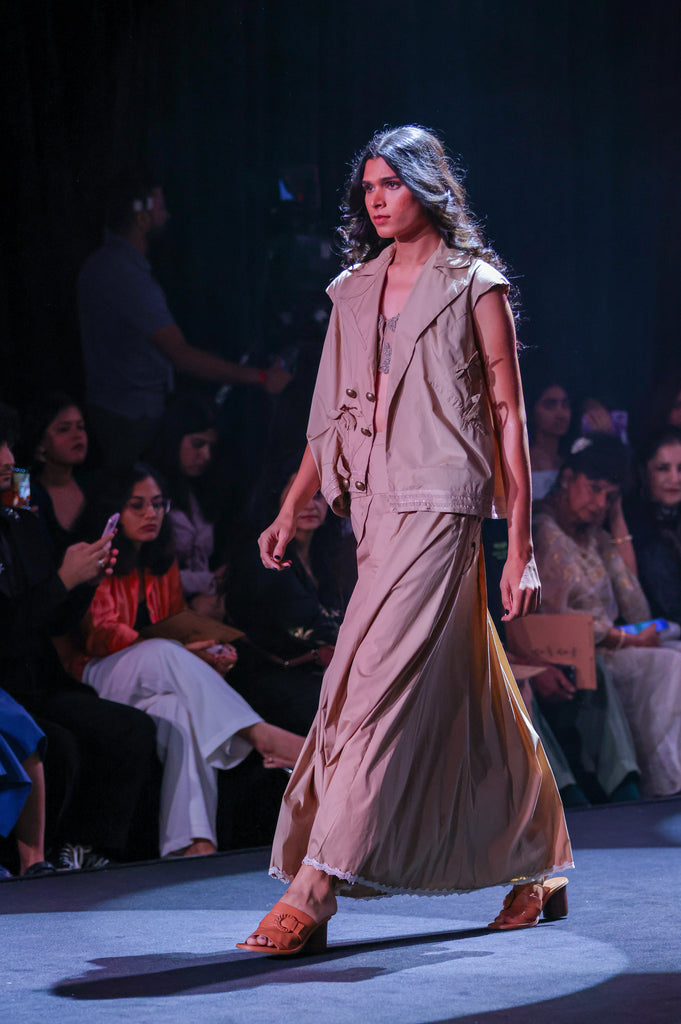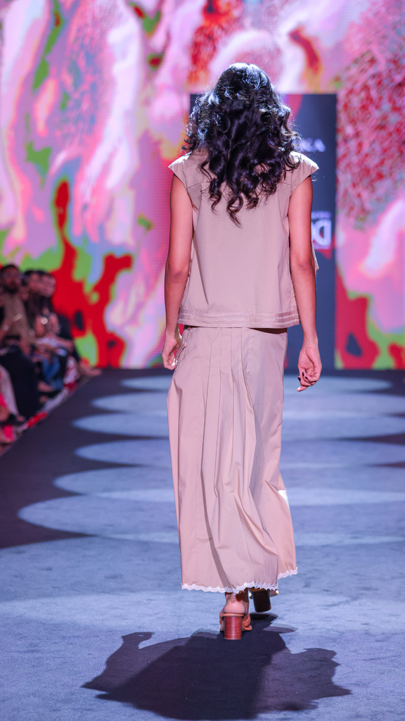 Cotton Poplin Asymmetrical Gilet & Pleated Yoke Maxi Skirt Set